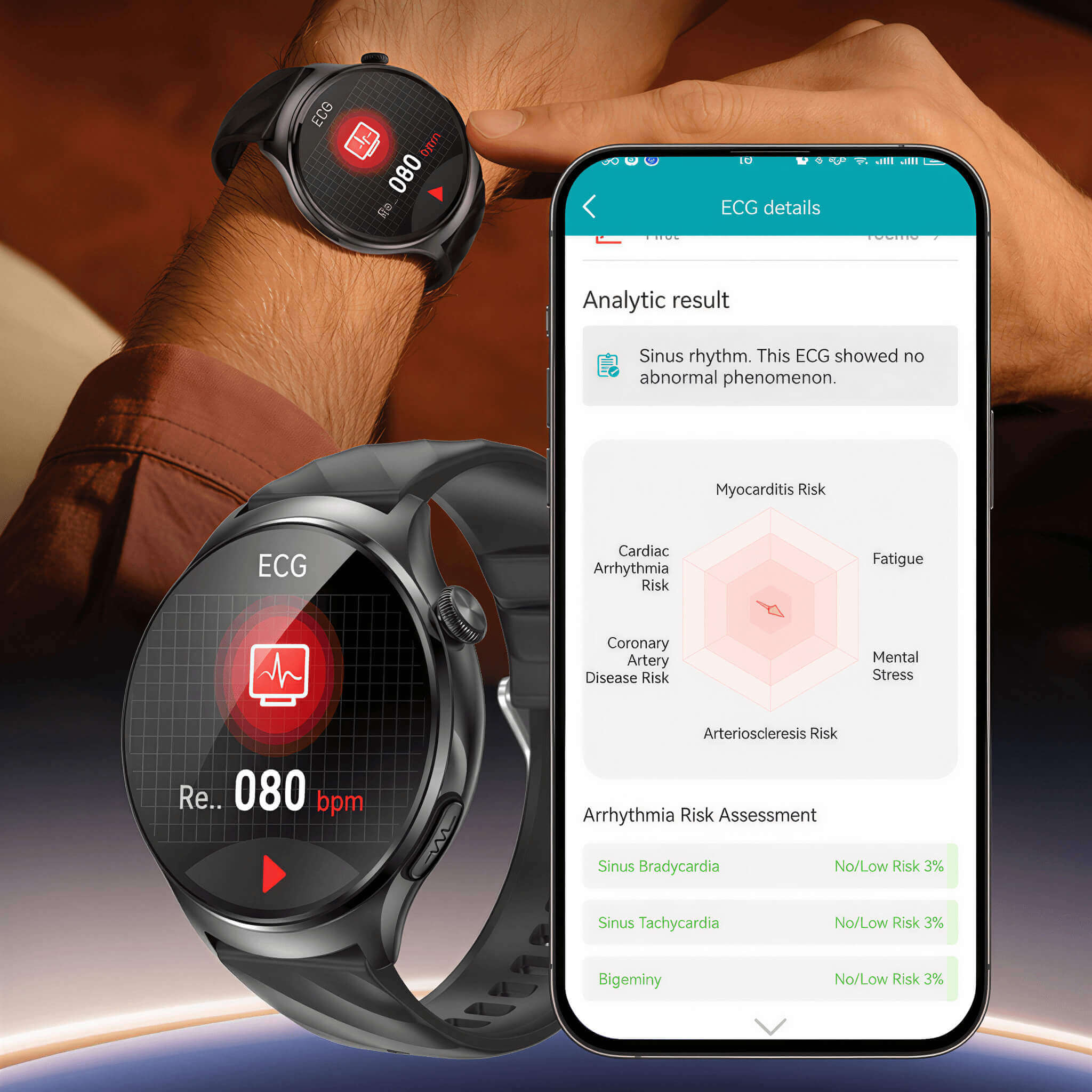Genom att integrera ECG- och PPG-sensorteknik utvärderar klockan viktiga hälsodata i realtid. Appen erbjuder 32 analyser av hälsotrender och övervakar indikatorer relaterade till hjärtrytm, kardiovaskulärt tillstånd, hjärtmuskelaktivitet samt övergripande hjärthälsa.